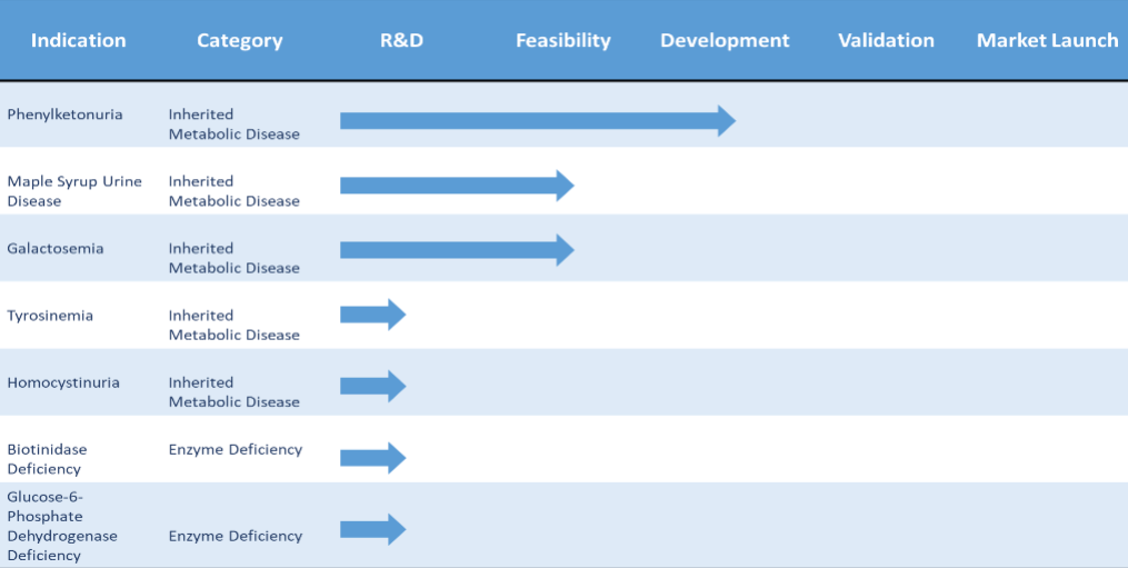 We are also applying our proprietary enzyme technology towards near patient applications in enzyme deficiency disorders including